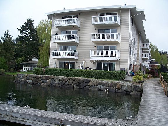I feel I have the best unit in the building as I have a large patio right over the lake--it gives me so much more room of outdoor living space. I have DEEDED MOORAGE up to 30 ft boat or jet skis !!!! Spacious 3BD ground level front condo--1087 sq ft--interior and exterior recently updated. Oak floors, tiled baths, jetted tub. White beadboard and shutters give a beach feel. Newer vinyl siding, windows and sliding glass doors.. Great location next to I-405, new Seahawk Complex, bike trail and close to the Landing (new shops and restaurants) Within 10 min. of Southcenter and Bellevue Sq and sits between 2 waterfront parks! Covered parking right next to unit, and no stairs. Must see this unit to appreciate how special it is !!!! MLS #695256 Neighborhood Description The neighborhood is great because it is so close to everything--airport, I-90.Renton,Bellevue, Seattle and Issaquah--all within 10-20 min.Most of the neighborhood is on Lake Wash. , so it has a sports oriented feel!