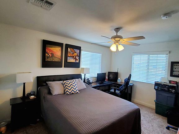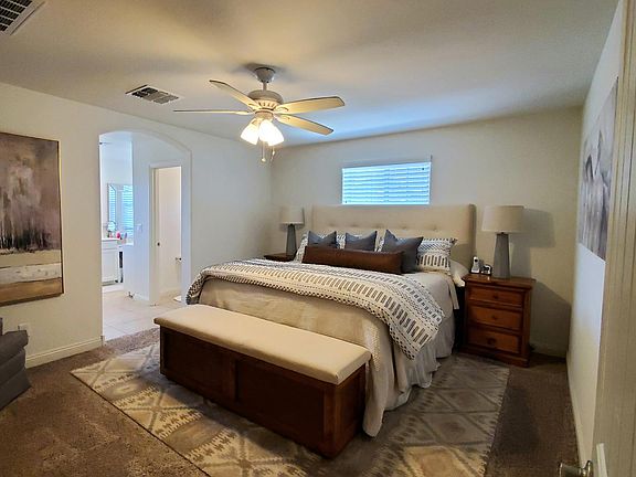 3 car garage - 4 bedroom (master up & master down), 3.5 bath home in Eastmark community! Open concept living area with beautiful eat-in kitchen for easy entertaining! Neutral paint + flooring throughout with modern fixtures & lighting. Enjoy a low maintenance backyard with covered patio. HOA maintains front landscaping! Desirable Mesa community with pools, spa, parks, sports courts, & biking/walking trails! New skate park, walk to community schools. No smoking. Small pets with pet rent/deposit. Available August 8th. Move-out inspection fee applies.