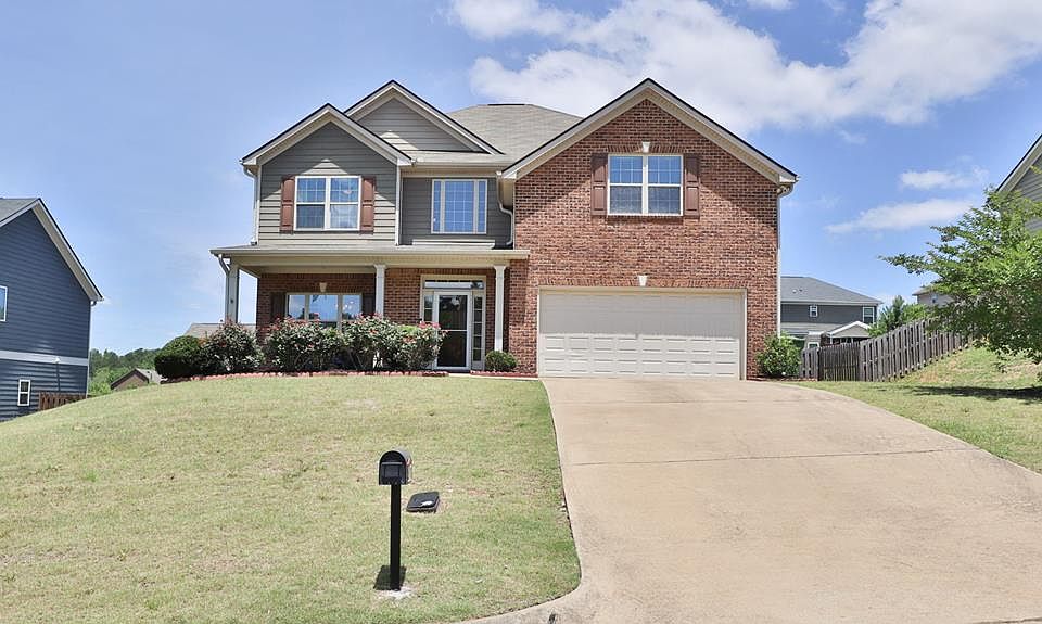 Great 5 bedroom, 3.5 bath home located within 15 minutes of Ft. Moore. Open floorplan with kitchen overlooking spacious light filled living area with an electric fireplace. Kitchen features granite counters, tile backsplash, new fridge, dishwasher, and garbage disposal. Has a pantry and tons of cabinet and counter space. Primary bedroom w/ en suite, double vanity and large walk in closet. 4 additional bedrooms upstairs and 2 full baths. Rear yard is completely fenced with a patio that has views of the lake and community clubhouse and pool.