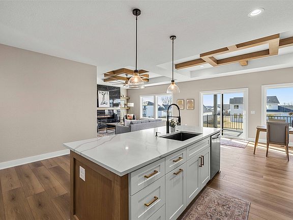 Located in Urbandale's Barrett Estates this charming ranch is a must see. This Home offers over 1,800 square feet on the first floor and over 1,400 square feet in the basement while sitting on a flat .31 acre walkout lot. The beautiful kitchen offers upper cabinets, pantry, all surrounded by an oversized kitchen island with a designated eat in kitchen area that will fulfill a large table. LVP throughout the main floor living areas with a eat in kitchen area. Jack and Jill style 2nd and third bedroom with an additional half bath in the locker room. Lower level will provide two additional bedrooms, full bathroom, wet bar with a custom trimmed out fireplace. Other bonus include huge storage room, composite decking, 8' garage door, irrigation, and awesome cedar accent ceilings on the exterior vaulted ceiling. Schedule a showing today! All information obtained from Seller and public records.
