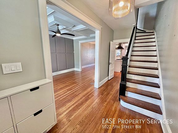 Welcome to 5022 5th Street. You'll fall in love with this beautiful Petworth rowhome that spans three levels and nearly 2,000 square feet. With its modern updates, ample outdoor space plus two-car garage parking, this is the perfect place to call your next home! Home Features: Welcoming front porch overlooking quiet 5th Street Beautiful hardwood flooring throughout Separate living and dining rooms Designer kitchen with quartz countertops, peninsula w/ bar seating and stainless steel appliances Sitting room at back of main level with gas burning fireplace Massive two-level deck with custom pergola, perfect for entertaining or escaping the indoors! Powder room on main level Second level leads to a spacious primary bedroom with ensuite bathroom and separate sitting room Large second bedroom on front side of home Smaller third bedroom across hallway Additional full bathroom in upstairs hallway Lower level in-law suite is essentially its own studio apartment with renovated kitchen and full bathroom Washer/Dryer in unit Massive garage has 220V outlet for EV charging and can easily fit 2 cars plus tons of storage space Utilities: Tenants are responsible for gas, water and electric. Lease Terms: Available July 8th. Minimum 12 month lease. Application fee is $35 and includes a credit check. Security deposit equal to one month's rent due upon lease signing. Pets considered on a case-by-case basis pending approval by Owner and with an additional $50/month pet fee (per each pet). Location: 5th Street is a quiet, residential street in Petworth that offers everything you could need for convenient city living. A quick walk to Sherman Circle Park and also walkable to Rock Creek Park. Great location for commuters with easy access to Georgia Ave plus many bus lines that take you directly Downtown.
