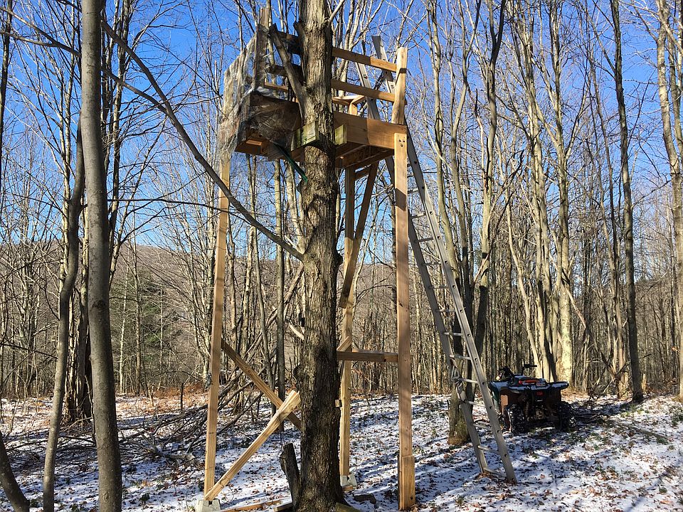 This newer Ranch style home offers very nice views from its nice open wraparound porch. REA electric with hook-ups for both a wood stove and a pellet stove. Ranch style house for sale situated on 26.75 acres. 2 bedrooms, 1 full bath, full eat in kitchen with solid wood cabinets. Sliding doors off kitchen with wrap around deck. Windows in every room. New floor in kitchen and living/dining area. Also has hook-up for pellet stove/fireplace in central room. Full basement. Private driveway. Good Hunting.