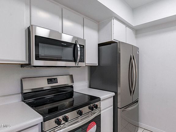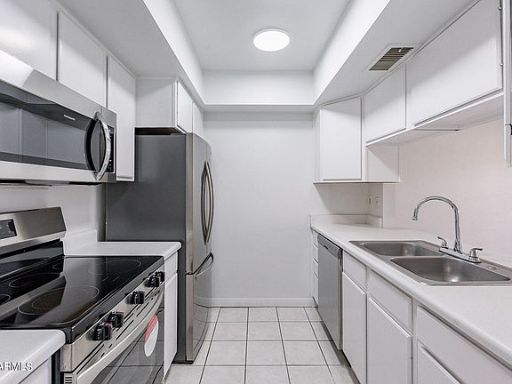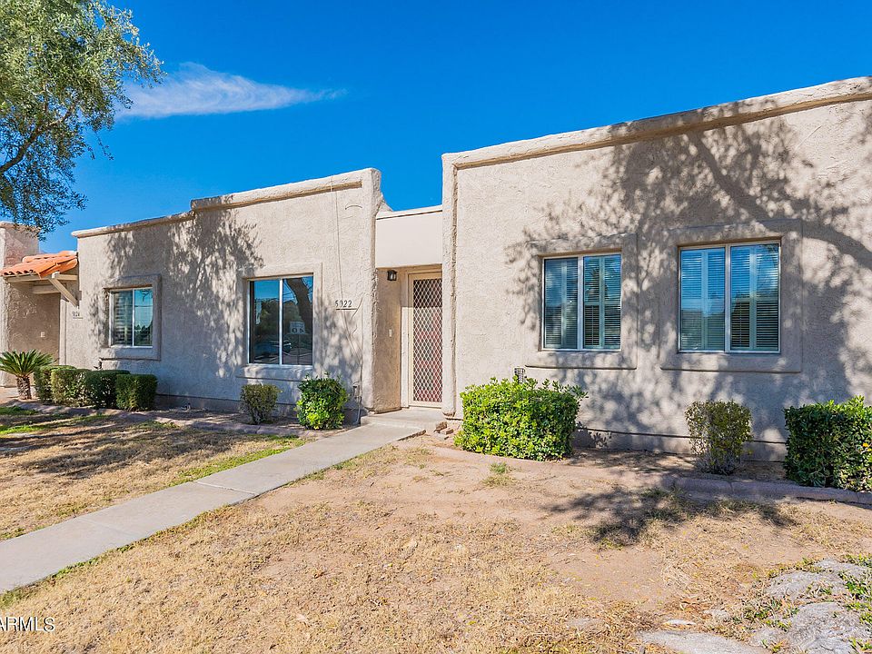 This is it! The only 2 bed 2 bath single level townhouse is now available in Chateau De Vie 7! This beautiful townhouse features an open floor-plan with nicely upgraded kitchen with brand new stainless steel appliances along with a side by side fridge, professionally refinished cabinets, updated lighting throughout, fresh paint, larger bedrooms, spacious in-unit laundry room, newer dual pane windows and much much more. Large covered patio, storage unit, and 3 parking spots directly behind the townhouse. The location is ideal with walking distance to the Chaparral Lake, restaurants, shopping and golf all very close by. This one will not last!