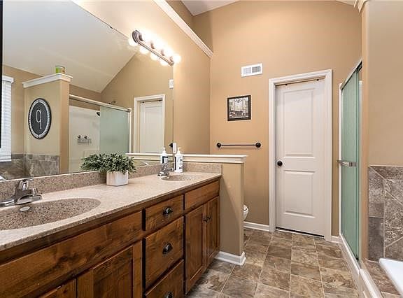 Conveniently located reverse 1.5 story home is located in a newer subdivision near schools, shopping, and entertainment. The open floor plan features wood floors throughout the living room with a fireplace and into the kitchen and eating area. A combination kitchen and eating area offers a breakfast bar, stainless steel appliances, and an abundance of stained cabinetry with granite countertops. The owner's suite with vaulted ceiling features a well-designed bath with double vanities, tub, separate shower, and an oversized walk-in closet. The first level 2nd bedroom can easily double as a home office. The lower level walks out and includes, bedrooms 3 and 4, full bath, and rec room. 2021-08-13