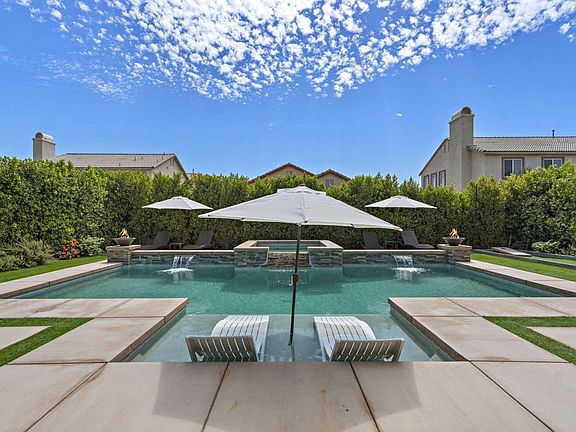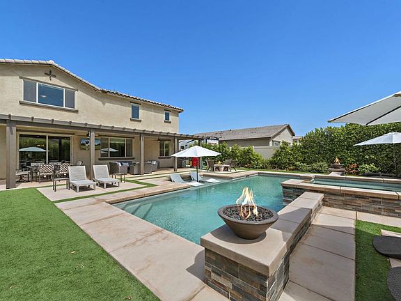 Debuting to the market is this credible turnkey furnished resort-style home, built by Pulte Homes in 2020 and nestled in the heart of Coachella. Every detail of this extraordinary home has been meticulously curated. With six generously sized bedrooms, three full bathrooms, a flex game room or office, and 2,798 square feet of living space. As you step through the front door, you're instantly embraced by the warmth of upgraded wood laminate flooring that sweeps across the entire home, including the elegant staircase. The spacious and inviting chef's kitchen is the heart of this home, equipped with state-of-the-art stainless steel appliances and adorned with a sophisticated lighting package that sets the right mood for any occasion. Step outside and be greeted by your personal paradise for outdoor living. The oversized pool and spa invite you to relax and refresh, while the expansive custom patio cover, embedded with lights and ceiling fans, creates an ideal setting for hosting unforgettable gatherings. Imagine cozying up around the natural gas fire pit on those cool desert evenings, or enjoying a friendly game of bocce ball or putting on the green with friends and family. Including custom blinds and drapes. This isn't just a house--it's a lifestyle. It's a place where every day feels like a vacation, where luxury and leisure go hand in hand. Not in a HOA. Music festival grounds and Thermal Airport is only 10 mins away. Don't miss your chance to claim this desert gem as your own