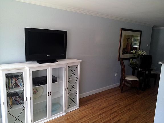 Beautiful 55 +, 2 bedroom 1 bath villa with attached oversize attached 1 car garage. Washer/dryer hookup in garage. Totally remodeled. Beautiful crown molding, and beautiful trim work. Laminate floor. Stainless steel refrigerator, stainless steel island hood, granite counter top. Open floor plan. Beautiful high end bathroom remodeled. Lots of storage in garage. Conveniently located and within walking distant to shopping center. You also have access to a beautiful private beach. Everything is done and it's move in ready. No Dog Cat only. HOA approval require. Pictures was taken before tenant move in. Will be unfurnished Trash, water and sewer included in rent. Only cat allowed. You only have to pay Electric & Cable