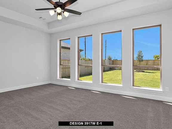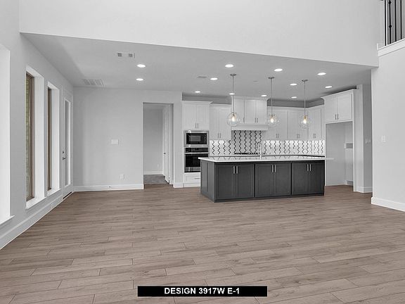 Two-story entry framed by home office with French door entry, formal dining room and a grand circular staircase. Formal dining room leads past the butler's pantry to the kitchen area. Spacious two-story family room with 19-foot ceiling, wood mantel fireplace and a wall of windows. Island kitchen with built-in seating space, two wall ovens, 5-burner gas cooktop and walk-in pantry opens to morning area. Generous primary bedroom with a wall of windows. Primary bath with double door entry has dual vanities, center garden tub, glass enclosed shower, two large walk-in closets and additional access to the utility room. Private guest suite with walk-in closet and full bathroom just off morning area. Game room with French doors and media room both with 10-foot ceilings, secondary bedrooms and Hollywood bath located upstairs. Extended covered backyard patio. Mud room just off the three-car garage with additional storage.