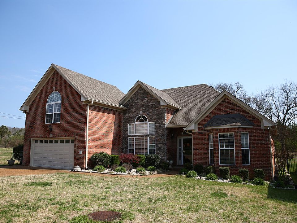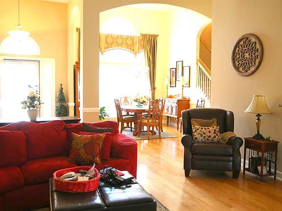 this lovely home features high ceilings, gas log fireplace, dining room, breakfast area, office with french doors, heated & cooled sunroom, 2 car garage, large fenced yard, upstairs bonus room with full bath, downstairs master, granite counter-tops