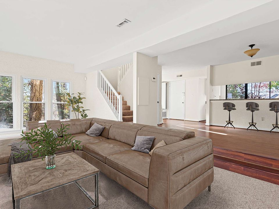Spacious Floorplan. This Townhouse in desirable Brandermill convenient to shops, trails, pool, reservoir, & Rt 288. Freshly painted, new Carpet, an abundance of natural light. Lots of windows! End unit, wooded lot, 2-rear decks. 2nd floor has loft bedroom, large 2nd bedroom, full bath, Laundry (washer/dryer convey), Master suite has lots of closet space. Entry is private, front fenced, w/large deck accessible from entry/kitchen. Kitchen has sliding glass doors leading to the spacious deck. New Carpet and paint throughout. Living room w/fireplace. Finished basement can be exercise studio, office suite, loads of storage, freshly painted, carpeted, bright. Brandermill offers a clubhouse with a quick walk to the lake. Home has been Virtually Staged