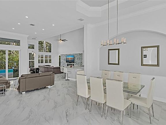 This Immaculate Pinecreek home located in a Boutique neigborhood was totally remodeled less than two years ago and features: Fully equipped with PGT Impact Glass, porcelain tile throughout (34x34), kitchen and bathrooms countertops, plus all window seal are Quartz, Eat-in Kitchen updated with Stainless-Steel Appliances, huge Island with Snack Bar & decorative Pendant lighting, kitchen cabinetry, tankless water heater, both A.C. units (10 year Warranty), all 4 bathrooms, washer and dryer plus cabinets, Epoxy floor garage. Pool area is just over a year old and features: Led lighting, heater and chill temperature combo, Bubbler and sheer descent waterfall. Travertine floor throughout the backyard. Ring system, smart door locks, 9 cameras plus all doors and windows are connected to the system. Extended poured decorative concrete driveway & Enhanced Tropical Landscaping that makes this home unique. Spacious master Suite offers Walk-In Closets, vaulted ceiling and a beautiful pool and natural reserve view. The Main Bathroom is equipped with Two Vanities, Enclosed Shower and private toilette room. New plantation shutters and cozy fireplace built in a stone ledger wall in living room area. Recessed LED lighting fixtures throughout the house. This neighborhood is located next to Saw Palmetto Natural Park with beautiful walking trails.