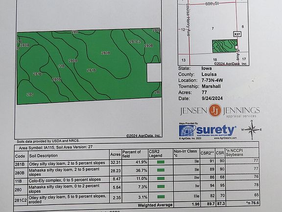 Located east of Winfield, Iowa this farm with 77 acres m/l is exceptionally high soil quality rated farm with a CSR2 of 89.7. Check this one out.