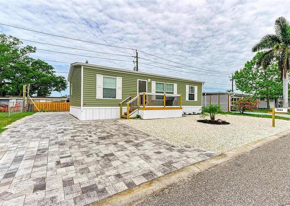 NEW PRICE! You "OWN THE LAND" with this beautiful 3 bedroom/2 bath property that everything you would expect to find when purchasing a NEW Mobile Home. Starting with luxury VINYL Flooring throughout, a Kitchen designed for a Chef with a BARN STYLE STAINLESS SINK, STAINLESS OVEN HOOD VENT, STAINLESS APPLIANCES, great Counter Space, Storage Galore, and even a “Rolling Island” for eating & entertaining. You will also appreciate the “Uniquely styled Light Fixtures, the Front Glass Door, the Split Bedroom plan and having the convenience of an inside Laundry area. The EXTERIOR of the home has a FRONT PORCH for you to enjoy sitting outdoors, CRUSHED STONE creating a xeriscape environment, a lovely driveway with designer pavers, new fencing in rear as well as a paved rear sitting area, and a new shed for great storage. If you want an active 55+ community that offers great amenities including a clubhouse, community pool, shuffleboard, pickleball and a variety of events, then this is a must see! Make your appointment today!