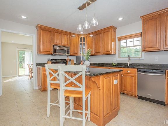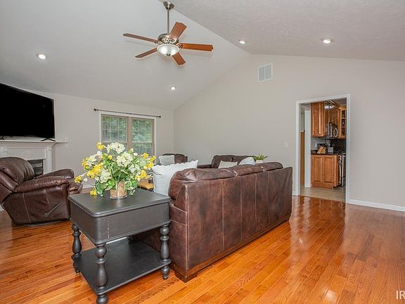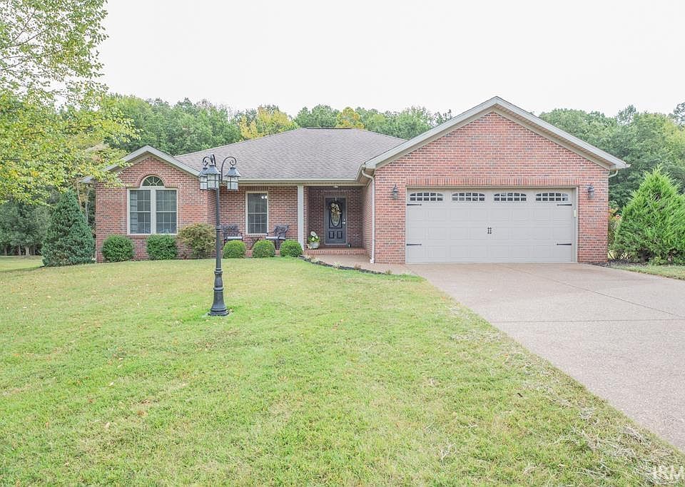 Welcome to your dream home on the Westside of Evansville! This stunning, well-maintained home boasts 1885 sq ft with a 3-bedroom, 2-bath all-brick ranch sitting on a little over an acre. Step inside to find a spacious living room with cathedral ceilings and a cozy gas fireplace, perfect for relaxing evenings. The kitchen is a chef’s delight, boasting beautiful cabinetry, granite countertops, stainless steel appliances, and an island that provides extra seating and plenty of cabinet space, with cabinetry extending to the ceiling. The dining room, just off the kitchen, opens directly to the patio—ideal for indoor-outdoor entertaining. The primary suite is a true retreat, featuring a tray ceiling, a large walk-in closet, and an ensuite bathroom. Two other bedrooms are located across the hall. Enjoy the fresh new carpet in the bedrooms, new A/C unit, new hardware throughout and all complemented by fresh paint.The outdoor space is just as impressive with a large, flat lot offering plenty of room to relax, play, or simply enjoy the beautiful view of the wooded back area. Plus, there’s a convenient 2-car garage for all your storage needs. Don’t miss out on this perfect blend of comfort and style.