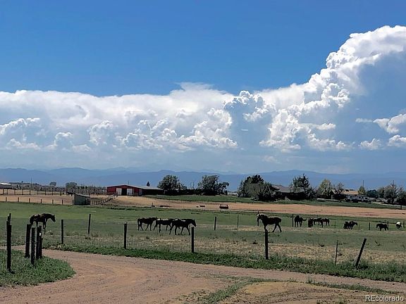 Situated 500 yards down a private drive, the property offers an ideal vantage point to enjoy majestic views of the Front Range, magnificent skies, frolicking horses at pasture and the serenity of the waterfowl preserve it abuts. Included are a large shop/equipment building with attached 3-stall pole barn.
