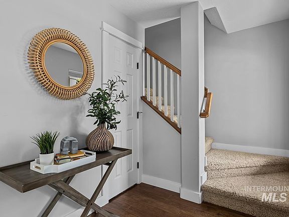 Move in ready & easy to maintain, this cozy Columbia Village home is sure to impress with its welcoming front porch & multiple special features. The spacious living room offers a beautiful fireplace and abundant light. The cheerful kitchen and dining area features granite countertops, SS appliances, ample cabinetry, a large corner pantry, plus a breakfast bar. Beyond the dining area there is an enticing sunroom, leading you to a low maintenance, east facing backyard, perfect for peacefully enjoying the long Boise summer evenings. Solid surface flooring throughout the entire main level. All three bedrooms have plentiful space, especially the primary bedroom featuring an on suite double vanity bath with tile & large walk in closet. Laundry is located upstairs. Enjoy easy access to all Columbia Village has to offer, including recreational center, multiple pools, walking/bike paths and more. Simple freeway access and easy proximity to Boise downtown, Boise River, The Greenbelt, Lucky Peak and more!