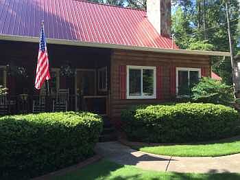 Move-in-ready log home in a gated resort-like community. Enter from the rocking chair front porch to an open floor plan. Living room with a beautiful vaulted ceiling a combination of log and painted walls, a rock fireplace with gas logs and a view of the loft area above. All floors on main level are hardwood with tile in baths. Separate dining room. Kitchen with island seating, granite counter tops and breakfast area. French doors lead to a large screened porch with tile floors and adjoining grill deck overlooking a private fenced back yard filled with azaleas and dogwoods. A 150 foot green space behind this property guarantees permanent privacy. Master on the main with large bath and laundry. Guest half bath also located on the main. Children or guests will enjoy large bedrooms upstairs with vaulted wood ceilings and a large two-room bathroom with vaulted ceiling. Finished daylight basement apartment includes complete kitchen and laundry. Home has a two car attached garage and a two car detached garage for your boat, your collector car, a hobby shop or teen or in-law parking. Hot water furnished to home vial a Tank-less energy efficient gas hot water heater.