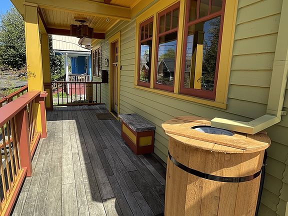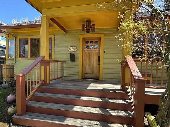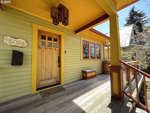 This is a unique gem...beautifully restored and updated by the contractor-owner utilizing an innovative eco-conscious "reclaim/re-use" ethos with exceptional re-purposed vintage and custom made fixtures and finish. The subtle attention to detail is truly special and fun. Enter to an open floor plan living room with oak hardwoods, a wood burning fireplace with built-in book shelves on either side and French windows. The living room adjoins the kitchen with 2 eating bars. The kitchen has stainless steel Dacor, Bosch and Kitchen Aid appliances, custom built clear fir cabinets, granite counters, custom built range hood and instant hot water. Also on the main there are 2 bedrooms, one with cedar-lined closet, honey colored fir floors, tile bath with heavy duty porcelain cast iron tub to keep your baths warm longer. The finished lower level has cork floors, a bedroom with legal egress, tile full bath with walk-in shower, a family/media room wired for sound with large screen, ceiling mounted projector and a bar with a wine frig and mini-frig. There is a separate entry to the lower level with Air BnB/ADU potential. Outside there is a covered front porch, fully fenced backyard with a flagstone patio area, downspouts with rain barrel catchment to save on watering the garden that features hops vines starting to climb the trellis. Home Energy Score Is 9 out of 10! Last but not least there is an extra large 590SF detached garage with possibilities limited only by your imagination. It's 2 blocks to the Max Line, a few to parks, cafes, New Seasons, Adidas and more. [Home Energy Score = 9. HES Report at https://rpt.greenbuildingregistry.com/hes/OR10214347]