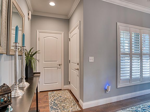 Luxury townhome with 2 or 3 bedrooms and 2 full baths. Built by CAC Custom Homes. This is a end unit with an extra window for additional light. Attention to detail in this end unit is apparent. 9 ft. ceilings, Crown molding, engineered wood flooring, arched doorway, plantation shutters, and the list goes on. The well equipped kitchen offers upgraded cabinets, granite counter tops, castled cabinets, stainless appliances, a prep island, and a pantry. The primary suite boasts a walk in closet, and a private bath featuring a double vanity and a custom tiled walk in shower. There is an additional bedroom and a hall bath. Off the living room is a sunroom or third bedroom. Completing the interior is a nice laundry room. Outside is a 16x38 privacy fence with an exposed aggregate patio. You will also find a spacious two car garage with no steps. This is a PUD not a condo making the yearly association dues only $150.00.