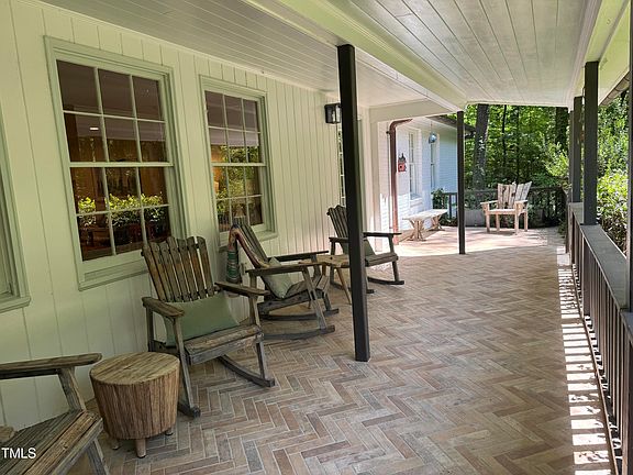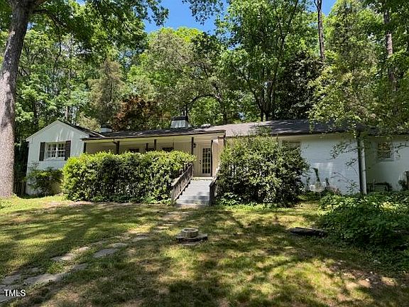 RETREAT, RELAX, and RENEW at this charming all brick ranch home on 2.8 acres in Chapel Hill! This character-filled 3 bedroom, 3 full bath feels like an escape from the beginning of the driveway. At first glance the property boasts large hardwoods, followed by fields of grass and wildflowers plus areas perfect for gardening. The covered brick back porch opens to a fenced area for pets and humans to stay a little more contained. Beyond the fence a stone path leads to over 2 acres of beautiful fields and trees. Inside is just as lovely as the outdoors. The focal point of the open family room is a gorgeous stone wood-burning fireplace. The warm inviting primary suite features a bathroom with a soaking tub and separate enclosed shower. The dining room is full of light and offers a cozy second gas burning fireplace. This well designed dining room can also be used as a study. The kitchen is accessible from both the large open foyer or the dining room. The remodeled kitchen is perfect for entertaining with ample serving space and high end appliances. The wide hallway to the left of the home offers a full bath accessible for guests. Next is the study/office that invites privacy and creativity as it overlooks the green acreage out back. The two very spacious second and third bedrooms share a jack and jill bath with separate vanities and a shower/tub combo. The hardwoods throughout along with the timeless copper gutters enhance the character of this 1964 home while incorporating modern updates. This property has so much to offer! And there is more.....all furniture and most large decor conveys. Washer, dryer and refrigerator convey as well. EV charger installed, New roof in 2019, Septic replaced in 2014. No HOA. Escape to this retreat just a few miles away from Chapel Hill or Hillsborough.