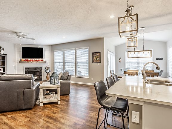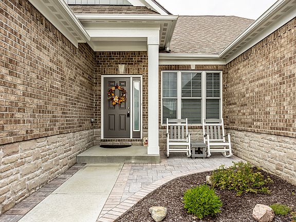 Wonderfully loved newer ranch home in Noblesville popular Slater Ridge! Classic split floor plan with 3 bedrooms and 2 full bathrooms and private office. Open floor plan with oversized kitchen island that opens to the dining space, living room and sitting/sunroom! Sellers have recently finished part of the basement to add even more wonderful living space, basement also also an abundance of storage and workshop area! Basement is plumbed for a full bath! Enjoy your spacious back deck even in the sun with a custom awning or sit in the front and wave to neighbors on the brick front porch! Plenty of room for cars and your toys in a 3 car side loading garage. Property does include an irrigation system.