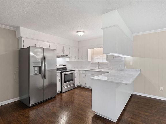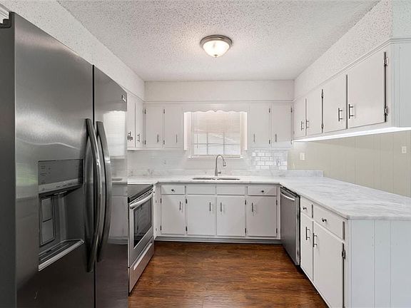 Step inside to discover stylish, dark-toned laminate flooring flowing through the main living spaces, offering both durability and modern appeal in high-traffic areas. The open-concept layout provides an inviting atmosphere, ideal for entertaining guests or enjoying family time. The kitchen is a standout feature with crisp white cabinetry, brand-new stainless steel appliances, sleek granite countertops, and updated fixturesall designed with both function and style in mind. Each of the three bedrooms has been thoughtfully updated with plush new carpeting, a fresh coat of paint, and contemporary lighting and hardware. The guest bathroom has been completely renovated, showcasing elegant new tile flooring, a pristine white vanity with granite counters, and a beautifully tiled tub/shower surround. The primary suite offers privacy and comfort with its own en-suite bath, which mirrors the same high-end finishes: updated tile flooring, a modern white vanity, granite countertops, and stylish tile work in the tub/shower area. Outside, youll find a spacious backyard and a standout featurea large, detached two-car garage with plenty of additional storage space. Perfect for vehicles, hobbies, or extra belongings! 2025-06-30