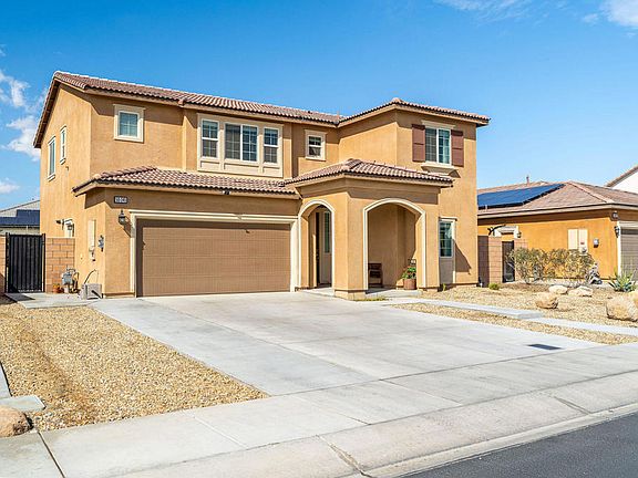 Located in the vibrant city of Coachella, this beautifully maintained newer construction home offers 4 bedrooms and 3 baths, perfect for a growing family. The spacious floor plan provides comfort and functionality, while the meticulously kept interiors reflect true pride of ownership. Step outside to a generously sized backyard with lush grass, ideal for outdoor gatherings and play. The home also features leased solar panels, helping to keep energy costs low. This home offers a prime location with easy access to local amenities, schools, and parks. Don't miss this opportunity to own a beautiful home in a secure, thriving gated community!