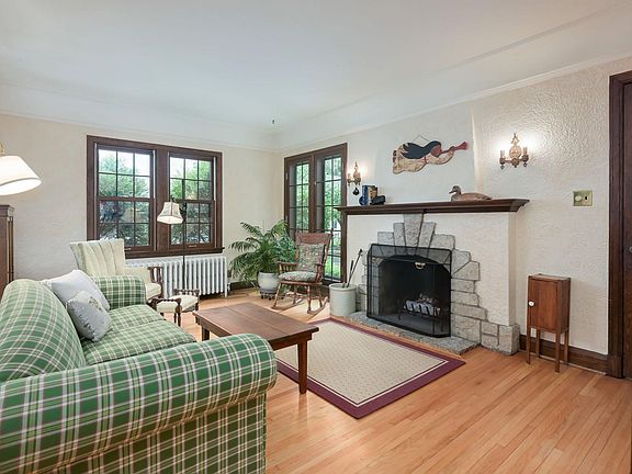Charming Home Available for the First Time in Over 40 Years! Welcome to this beautifully maintained classic home, featuring a timeless floor plan and thoughtful details throughout. From the moment you step through the stunning arched entry door, you'll be impressed by the warmth and character this home offers. The inviting living room is filled with natural light, highlighted by gleaming wood floors and a wood-burning fireplace as the focal point. Don't miss the charming light sconces flanking the mantel and the eye-catching dining room fixture, adding to the home's unique personality. Enjoy the seamless flow from the living room to the dining area and into a spacious, functional kitchen with room for an eat-in or breakfast nook. Perfect for everyday living and entertaining alike. The main level includes two comfortable bedrooms and a full bathroom that blends vintage charm with original tile work and modern subway tile in the shower. Upstairs, you'll find generous ceiling height and flexible spaces ideal for an office, studio, or additional living area, plus plenty of closet space for storage. The versatile lower level features an open layout for a variety of potential uses. It also includes a convenient quarter bath (toilet only), along with a dedicated laundry room and mechanicals area, providing ample room for storage and organization. The front yard has a mix of thyme and other “bee friendly” plants. The backyard has a rain garden and many thoughtful and curated plants and trees. This beautiful home is ready for its next chapter, don’t miss the opportunity to make it yours!