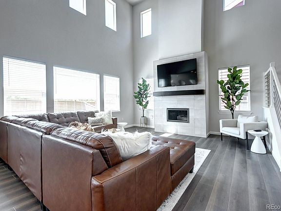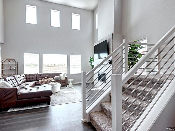 Picture Perfect Inside and Out! 3 Bedroom + Loft, 3 Bathroom, Smart Home Automation and Technology Ready Home located within the Terrain community of Castle Rock! Step inside and you will be impressed by this homes inviting Entry/Foyer, large windows, soaring vaulted ceilings and bright interior which provide the backdrop for this homes comfort and livability. Main floor hardwoods, private Study/Home Office workspace plus casual open concept Great Room w/vaulted ceilings, cozy electric fireplace and stunning mountain views. The gourmet chef's Kitchen is the heart of the home and features an oversized pantry, white 42' custom cabinetry, tile backsplash, Quartz counters, stainless appliances, island/breakfast plus eating area w/access to the outdoor patio. 2-car oversized attached garage! The upstairs living area showcases a spacious Loft w/mountain views, Laundry Room, Full Bathroom w/oversized vanity plus 3 Bedrooms each w/ceiling fans including a luxurious Master Retreat complete w/mountain views, walk-in closet outfitted w/custom built-ins and en-suite 4-piece Bathroom w/modern tile, finishes and fixtures plus an oversized shower w/rain head fixture. The Basement offers over 1,200 SF of additional living space and awaits your finishing touches. Private fenced yard w/patio provides the perfect place for entertaining or casual outdoor living. Excellent location w/convenient access to I25, Downtown Castle Rock, Outlet shopping and minutes from Castlewood State Park. Your family will enjoy the exclusive Terrain amenities featuring pools, dog park, tennis, park and miles of walking/biking trails steps from your front door. Energy Efficient Solar Home! Don't miss the opportunity to be a part of this vibrant community!
