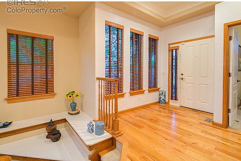 Fabulous bright & open floor plan with spacious master bed/bath on both levels! Upgraded kitchen appliances including gas stove,beautiful custom floor-to-ceiling slate fireplace surround in living room, oak floors throughout main level, beautifully-designed and extended patio made of zero-maintenance Trex decking, finished daylight basement with 3 beds, 2 full baths, huge family room and radiant heating in basement floor. Amazing views of Long's Peak from the patio, living room,& master bedroom