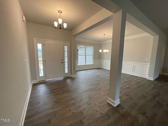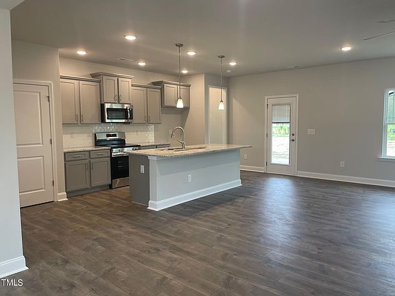 Prepare to be enchanted by this stunning 3-bedroom, 2-bath home boasting 1826 square feet of luxurious living space, all nestled on a generous .53-acre lot. Step onto your inviting covered front porch and enter into the heart of the home, where a spacious open floor plan awaits. The living room beckons with a cozy corner fireplace featuring gas logs, perfect for chilly evenings ahead. Adjoining the living room is an elegant formal dining room adorned with desirable chair railing and wainscoting, creating an atmosphere of sophistication. The kitchen is a chef's paradise, featuring granite countertops, an oversized island illuminated by stylish pendant lights, and a ceramic tile backsplash that adds a touch of elegance. Soft close doors grace the cabinets, while a spacious pantry and three stainless steel appliances ensure functionality meets style. The charming master suite boasts a trey ceiling and leads to a master bath showcasing a 5' shower with ceramic tile walls and cultured marble countertops throughout all bathrooms. The expansive walk-in closet provides ample storage for your wardrobe. Convenience awaits as you enter from the 2-car garage, where a convenient drop zone awaits for unloading heavy grocery bags or storing essentials. Step outside to your impressive 16x14 covered patio, an ideal setting for entertaining guests or relaxing after a long day. Plus, enjoy the benefit of no city taxes in this convenient location near I-95 and US Highway 64. Don't miss out on this exceptional opportunity! Schedule your tour today and envision the lifestyle you've been dreaming of in Magnolia Estates!
