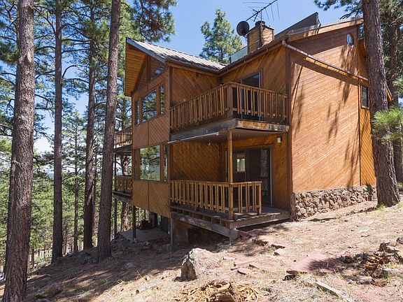 Mountain Top Views of the San Francisco Peaks from many view windows and decking. This 3 Bedroom 2 Bathroom home is outdated but very unique and private while surrounded by very high end homes and mature pine trees. The existing roadway winds up the hillside with narrow right of way, please call for directions.