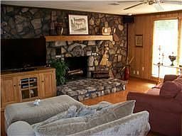 Relax in this gorgeous 4 Bedroom, 3 Bath home on 26 acres. You will enjoy cool evenings in front of the "lodge-style" stone fireplace in the living room. The stones were hand picked right from the property. This room has hardwood floors and is open to the dining area and kitchen with ceramic tile floors. Enjoy the lovely cabinets with 2 lazy susans, a built in pantry and glass front display shelf. The large laundry room has a beautiful full bathroom with ceramic tile floors. Another full bath has dual sinks and wonderful tile floors and walls. There is a second kitchen area that still has hookups for appliances, but can be used as a multifunctional room. Enjoy the reading room with built in bookshelves. The large patio area is great for entertaining. This home is just waiting for YOU!!