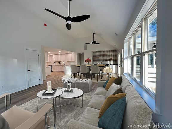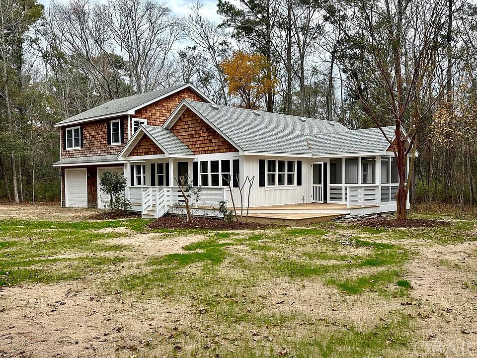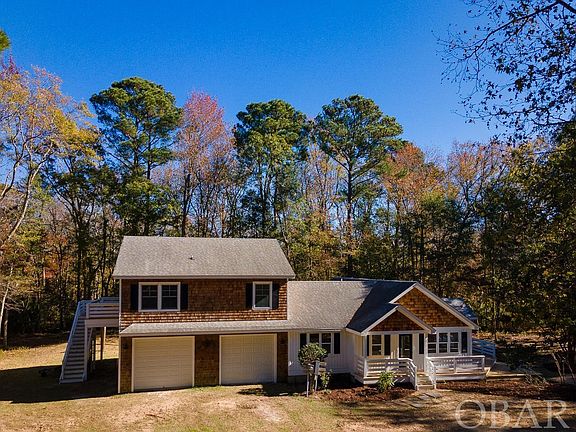 Act quickly on this completely remodeled coastal cottage that sits on an 80,000 sq. ft. wooded homesite (1.8 acres) backing up to the Kitty Hawk Woods Preserve. Upon entering the front door, you are greeted by a large living space with vaulted ceilings as well as a wet bar featuring black quartz, wine refrigerator, 12 lb. ice maker, and wood butcher block shelving. Right off the living room is a screened porch with a ceiling fan and south facing sun decks. The spacious kitchen has new soft close white cabinets, black handles, top of the line stainless appliances, white with gray tone quartz counter tops and subway type tile backsplash. Ensuite bedroom includes tray ceiling, walk-in closet, and completely remodeled bath with tile floors and custom tiled shower. Also included downstairs is two additional spacious bedrooms and bathroom with custom tiled tub, double vanity, and tiled floors. All bedrooms, living room and kitchen have beautiful driftwood color LUXE LTV flooring. Plus, all new interior doors and custom trim. Off the kitchen is a 900 sq. ft., two car garage with 8’ doors, high ceilings, work bench and 20’ X 24’ concrete apron. Above the garage is a separate entrance to the apartment featuring two bedrooms and one custom bath with living space including vaulted ceiling, stainless refrigerator, dishwasher and LUXE LTV flooring. This is an ideal space for Airbnb, year-round rentals, guest house, working space or intergenerational living. Brand new 5-bedroom septic system, two new HVAC systems, new decking, new vinyl siding, all new plumbing piping, new electrical outlets, switches and fixtures...it’s essentially a like new home. Great location 2-5 minutes to the Kitty Hawk Elementary School, Wright Memorial Bridge, two hiking trails, Harris Teeter/Walmart, Starbucks, banking and more. This complete value packed home is ideal for retirement, family, investment, AIRBNB, small business owner, nature lover. Worth looking at this incredible opportunity! Some photos have been virtally staged. Upstairs Matterport (copy and paste link): https://my.matterport.com/show/?m=AZ91K9S32aR&brand=0