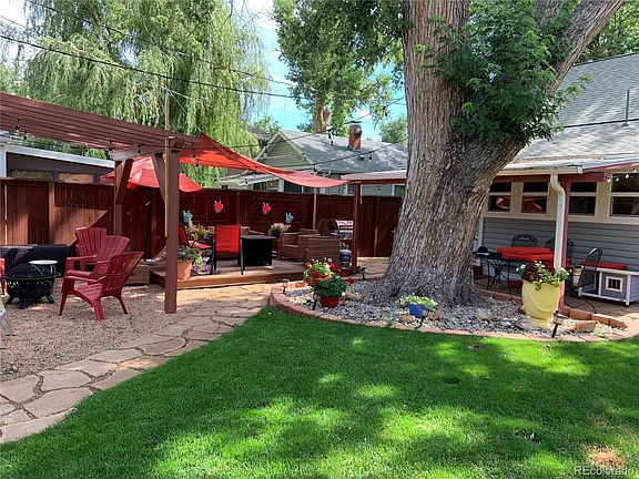 Zoned for an ADU, this charming bungalow in highly sought after Regis neighborhood, featuring the best front porch in Denver! Enjoy sipping your morning coffee on the huge porch while taking in a glorious sunrise, overlooking the gorgeous yard with flowering plants blooming from spring until fall. Absolutely stunning. Step inside to gleaming hardwood floors, 2 nice sized bedrooms with a cedar closets, updated bathroom, spacious remodeled kitchen featuring custom cabinetry, thoughtful built-ins and newer stainless steel appliances, custom blinds throughout. Light and bright sun porch offers even more custom storage, desk, utility sink and laundry area. The garden windows are perfect for growing plants and herbs year round. Tons of space downstairs perfect for an office area, closet and storage. Step outside to discover the backyard oasis, a shady private retreat with a wood deck, rock garden, and twinkling lights, ideal for alfresco dining or relaxation. Covered patio and garden boxes allow for growing fresh veggies, adding a touch of green to your urban lifestyle. The oversized, heated 2-car garage includes a workbench and plenty of storage for your outdoor gear. In the perfect location just a few blocks from both Rocky Mountain and Berkeley Lakes. Stroll to Willis Case golf course for a few rounds, or explore the vibrant Tennyson street with its boutiques, coffee shops bars and restaurants. Less than 7 minutes to downtown Denver and easy highway access to head up to the hills, this home offers the perfect blend of urban living and outdoor adventure.