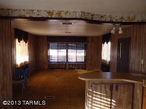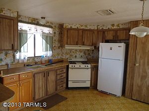 Manufactured home on 4.44 flat useable acres with 360 degree mountain views with many saguaros, property is totally fenced and gated and includes both private well and 320 gallon storage tank. Lots of room for horses or other animals, with water lines throughout property. Open kitchen, breakfast bar, and 2 pantries included. New furnace and freshly painted cool-coated roof. 2nd Manufactured home on property seller says used as an art studio. Open land to the east and large custom built homes to the South and West. This home is right off a paved road. Zoning allows for 18 horses, livestock,chickens, and agricultural crop production, per owner.