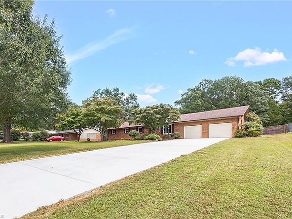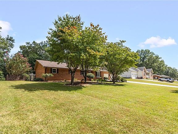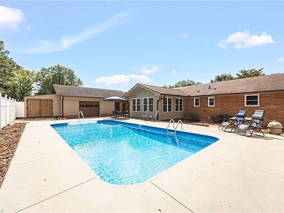 Welcome to this beautifully updated 3BR/2BA brick ranch on over ½ acre! Home has a large 2-car attached garage and mudroom/laundry with sink & cabinets. Fresh paint throughout highlights the spacious layout. The eat-in kitchen shines with brand-new quartz counters, stunning tile backsplash, and modern light fixtures plus a separate dining room and large living room with doors leading to a bright 15'8" x 15'4" sunroom overlooking the refreshing inground pool. The primary bedroom has a spacious walk-in closet and an ensuite with walk-in shower. Hall bath has dual sinks and a new tub/shower. Other amenities include a dedicated office, detached 700 sq ft workshop/garage, and covered brick patio. Outside enjoy a large front yard with mature landscaping, vinyl fencing around the pool, additional fenced yard space, crepe myrtles, and garden area. Brand-new concrete driveway fits six+ cars. Flooring includes hardwood, laminate, vinyl tile & new carpet. 1-yr home warranty. SEE AGENT REMARKS.