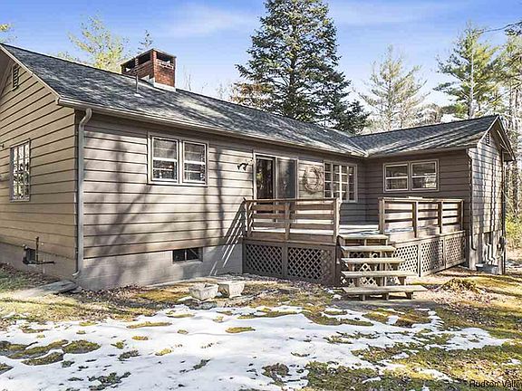 Lucy In The Sky With Diamonds.......just like a magical trip back in time, this completely charming mid century ranch with fabulous bluestone fireplace will embrace you with it's sweetness. Perfect as a retreat from fast-paced life in NYC or as a primary residence with easy access to many amenities, one level living in this two bedroom/one bathroom home, complete with full basement & 2 car garage. Many authentic features show this mid-mod to it's best advantage. Set on approximately 2.16 acres of wooded property, bordered by DEP recreational lands & Slide Mountain wilderness, you will enjoy watching wildlife wander through the property. Open floor plan for living and dining areas and really fabulous bluestone fireplace for your Winter warmth and enjoyment. Formal front door is original and quite gorgeous. Back door enters into kitchen for easy access from parking area.