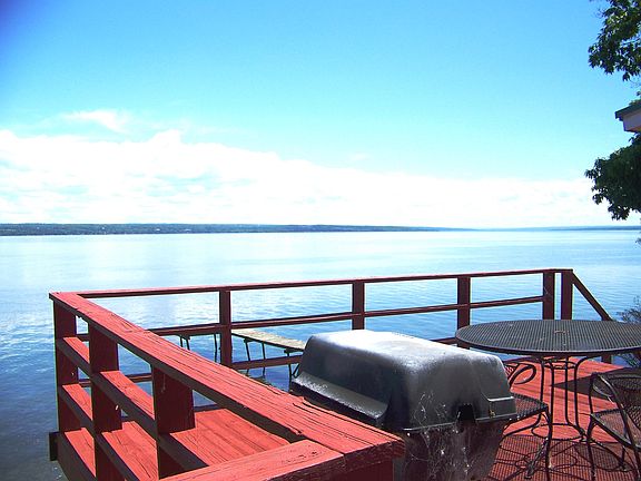 Over 200 feet of easily accessed lakefront. On the Cayuga Wine trail and across the road from a winery, the Cayuga lakefront home has sensational lake views. This year around home is an excellent choice for a summer lake escape or vacation rental. Spacious combo living/dining room, kitchen with extensive counter space and cabinets, attached garage, municipal water, deck overlooking lake, 3 bedrooms, basement walk-out to lake. Seller offering Home Warranty.