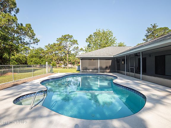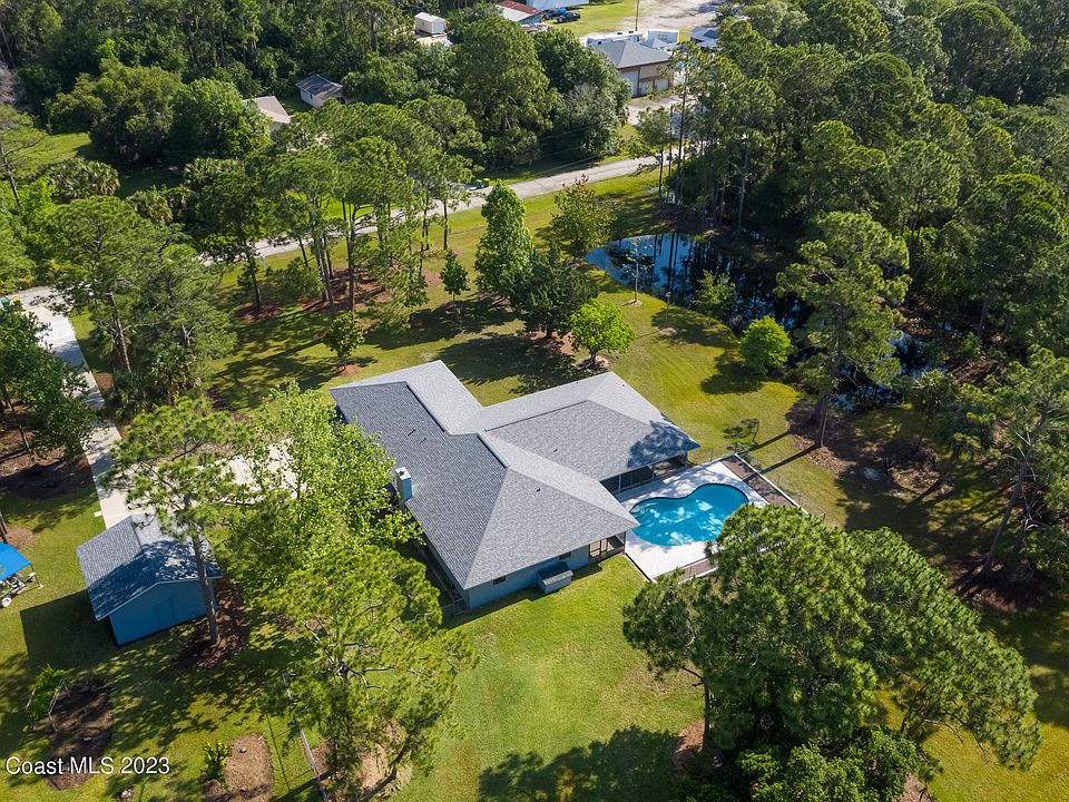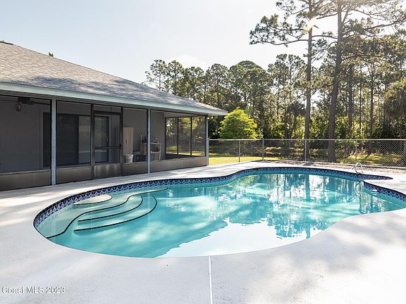 Wonderful and spacious pool home on 2.5 acres on a private road in West Cocoa. This stunning home boasts 4 bedrooms and 3 full baths with an additional office space, laundry room, formal living and dining and family room w/ gas fireplace. Large 3 car garage with additional 1 car detached garage workshop on 2.5 acres w/ stocked pond. New roof and AC within last few years.