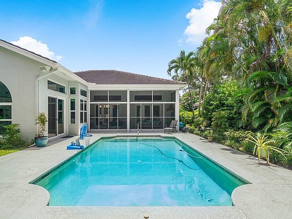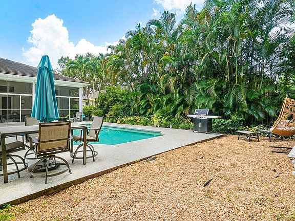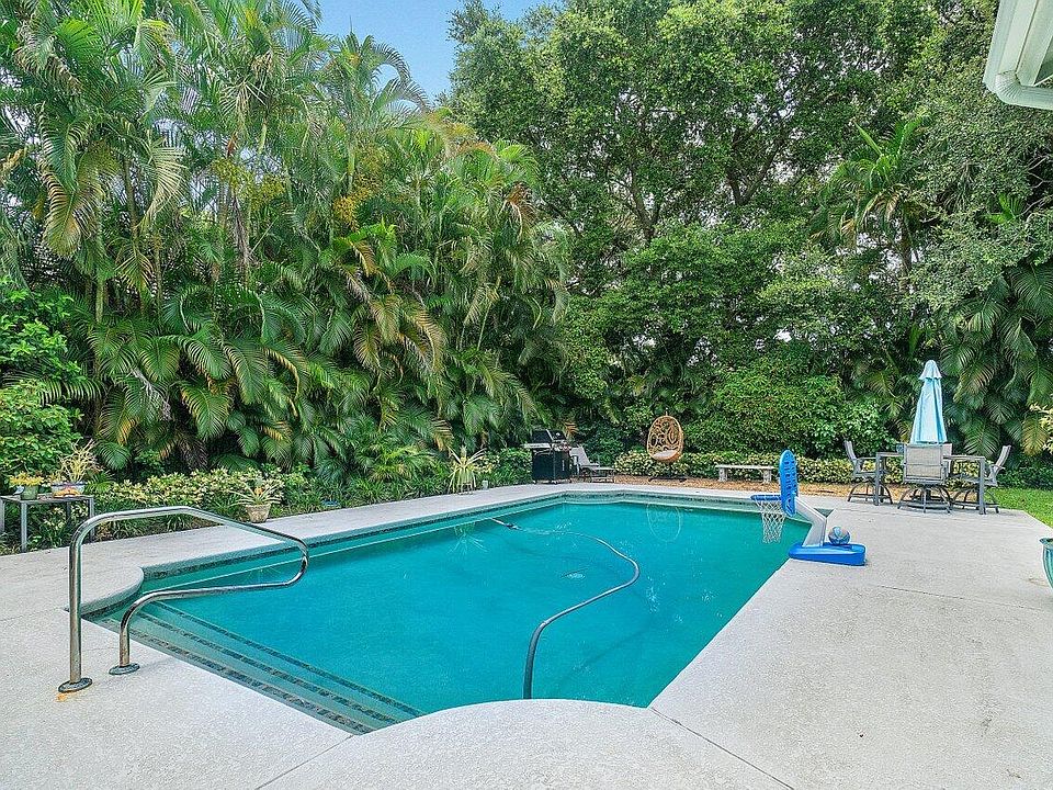 Newly renovated (bathrooms, paint, floors, laundry room, closets) hidden gem in the heart of Palm Beach Gardens. Rare property that has it all: Perfect location right off 95, walking distance to top-rated schools, restaurants, shops, playgrounds, soccer/basketball fields, and PBG Tennis & Pickleball Center; Single story 4/3 split floor-plan; Soaring ceilings; Loads of windows with lots of sunlight; Outdoor netted dining area w/ window straight to kitchen; plantation shutters; large chef's kitchen w/ Subzero refrigerator, double oven, gas stove & new Bosch dishwasher; Whole house water filtration system; Generator, Impact windows/doors. 4th BR has a built-in Murphy bed an. The oversized fenced-in backyard is your piece of paradise with lush landscape, a large saltwater pool, and lots of privacy. Happy place for your family!