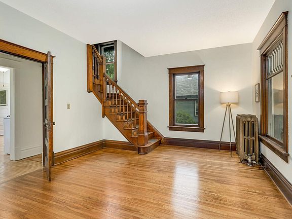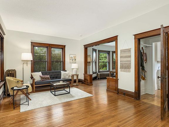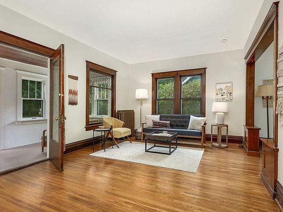 Don’t miss this absolute gem of a home in the heart of the Nokomis East neighborhood. Filled with original craftsmanship and charming details, including gorgeous natural woodwork, a beautiful open staircase, & 3 cozy porches. Even the doorknobs and radiators are intricately detailed! The main level includes a large living room and formal dining room, and a spacious kitchen with original details and an absolutely charming and bright walk-in pantry with stunning original floor tile. The main level also has a large, welcoming front porch, and you can enjoy your morning coffee in the privacy of the back porch overlooking the backyard. The upper level has 2 large bedrooms with beautifully coved ceilings, unexpectedly spacious walk-in closets, a gorgeous, unique built-in cabinet in the hallway, and another bright, window-lined porch. The home is freshly painted throughout with refinished hardwood floors, and it sits in an excellent location close to Minnehaha Falls, Lake Nokomis, the Grand Rounds trail system, and excellent neighborhood shops and restaurants.