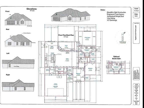 The Tupelo 3 Plan with 3BR/2BA featuring granite counter top in the kitchen and bathrooms, LVP flooring throughout the house. There are 10 ft ceiling in family room. Stainless steel appliances in the kitchen, finished garage, landscape and much more. Outside the city limits and no HOA on a .73 Acre Lot. Estimated completion is end of December 2022. A must see!