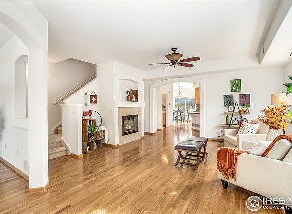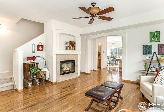 Desirable 3 bedroom, 3 bathroom, town Home in SE Fort Collins with 2 car, detached garage. Wood floors throughout the main level featuring a main level office.