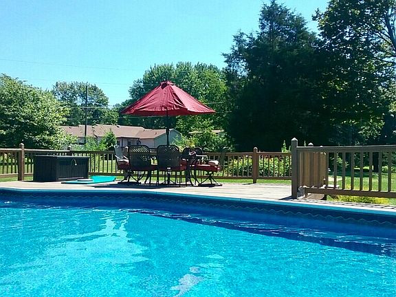 Beautiful Ranch home in a quiet desirable subdivision. This home sits on a large 0.67 acre lot with in-ground pool and large gazebo to enjoy the peace and quiet of this great neighborhood. Home features 3 bedrooms, 2 baths with 1,783 sq foot finished on main level with an additional 1,000 sq ft finished in the basement. Additional features include large stone fireplace with Buck Stove and bookcase attached. Basement has large laundry room with lots of storage available. Recent updates include kitchen remodel, new roof in 2016. Whirlpool appliances stay with house. Home is in award winning Floyd Central school district. For Sale By Owner