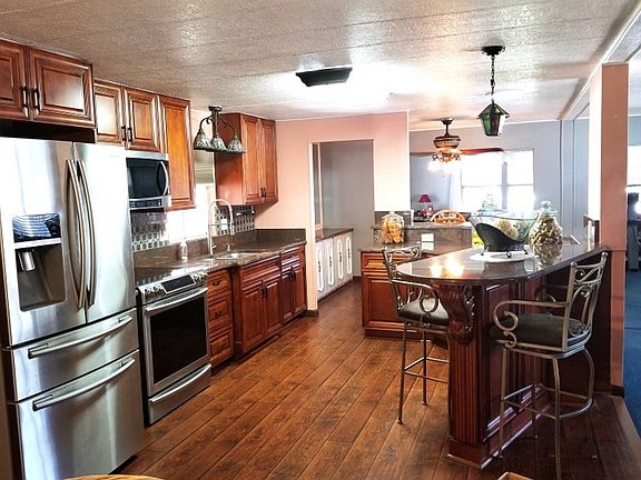 SPACIOUS LUXURY INSIDE AND OUTSIDE! Gorgeous double wide (24 x 59) home sits on the highest lot in the park. Located near the back gate on a perimeter lot with no rear neighbors. The upgrades begin before you even go inside. A new screened porch area was recently added at the carport. A huge new storage building, 10'x12' remains behind the attached shed. Step inside through the side entrance to the kitchen that is breathtaking. Gorgeous wood flooring, custom cabinetry, GRANITE counter tops, stainless steel appliances with French door refrigerator. Every detail in this kitchen was upgraded three years ago. New bathrooms upgraded at the same time. The front door is new, and all interior doors are new six panel doors. HVAC unit is only two years old. Master bedroom has designer custom closet and sliding glass doors to patio. Every detail in this home is high end. Designer ceiling fans everywhere. The upgrades are everywhere and extremely well done. You don't have to give up anything with this mobile home. Live like a King and Queen here. It's all ready for you to enjoy!