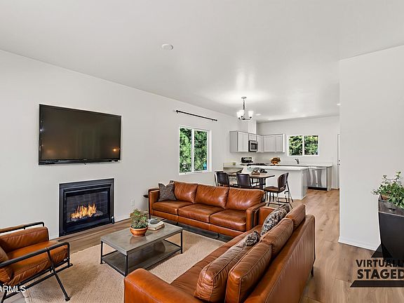 Welcome to this beautifully designed 4-bedroom, 3.5-bath home nestled within Trails End, an intimate 30-home community surrounded by serene Ponderosa pines and scenic Mt. Elden views. The open-concept living space is filled with natural light from a large picture window, complemented by a cozy gas fireplace for those cooler Flagstaff evenings. The stylish kitchen features quartzite countertops and stainless-steel appliances including a 30'' gas range, mounted microwave, dishwasher, and refrigerator, perfect for everyday cooking or entertaining. The home boasts European oak-toned luxury vinyl flooring, 9-foot ceilings, and an airy, modern feel throughout. Two of the four bedrooms are suites, offering flexible living options, and the spacious primary includes a large walk-in closet. Ample hallway storage and three full bathrooms plus a half bathroom ensure both comfort and function.