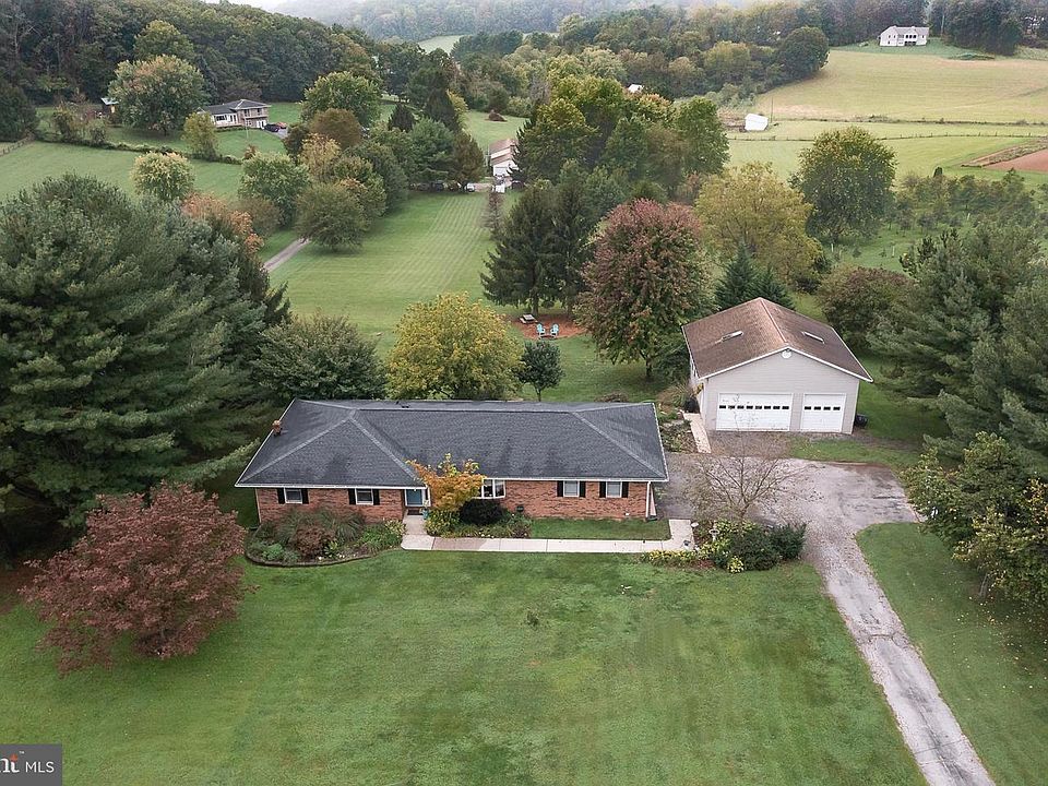 THIS IS THE ONE YOU WAITED FOR!! This gorgeous rancher in Millers, Maryland features a DETACHED SHOP/GARAGE and sits on 3 open, flat acres of ground! Walk inside to the open floor plan, starting with the large living room featuring hardwood floors and a large bay window. The open space takes you right into the huge eat-in kitchen. The kitchen boasts stainless steel appliances with a newer microwave and dishwasher. Cabinets and counter space abound! The slider takes you out to the spacious back deck where you will enjoy amazing sunsets over your 3-acre property! The first level of the rancher also has 3 bedrooms (with brand new carpet), a full hall bath, and a private, full primary bath! The fully finished basement also sports brand new carpeting and is much larger than you can imagine. The propane stove is the centerpiece to the largest portion of the room, but the basement also features a bar area (mini-fridge included), a separate space for a pool table (or whatever you desire), and a 4th bedroom/office/bonus room, complete with closet, built-in shelves, and a separate, completely updated, full bath! Downstairs you will also find a storage area and the laundry room. But maybe best of all: not only is there an attached 2 car garage for the family cars, but there is also a huge detached shop with 9-foot garage doors (3 spaces wide), has an office inside with space above the office for storage, and room to fit anything you can imagine! A great place to run a business or just enjoy your hobby! Between the gorgeous well-kept house, huge shop, and beautifully situated 3 acres, this is a dream Carroll County home! Latest updates: Architectural shingle roof (2018), new gutters for the whole house (2018), acid neutralizer (2020), new carpet for the whole house (20&21), high-speed cable/internet (2018), dishwasher (2017), microwave (2020). Other amenities: whole house fan in the attic, completely floored huge attic for storage, whole house water filter, and generator hook-up with own sub-panel. The property is zoned conservation so no one can build on it! With easy access to Falls Rd, Hunt Valley, Timonium, and Hampstead, this is the perfect house in the perfect location!