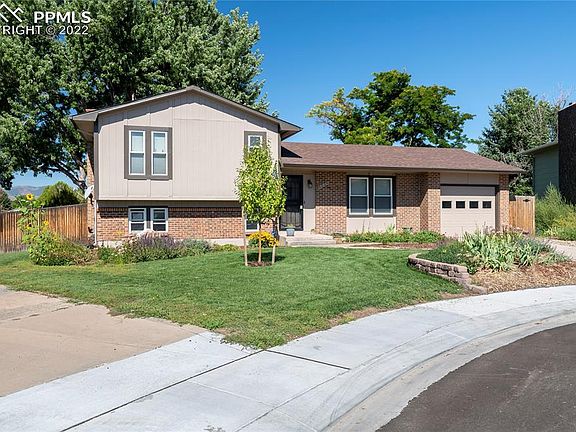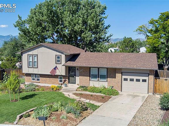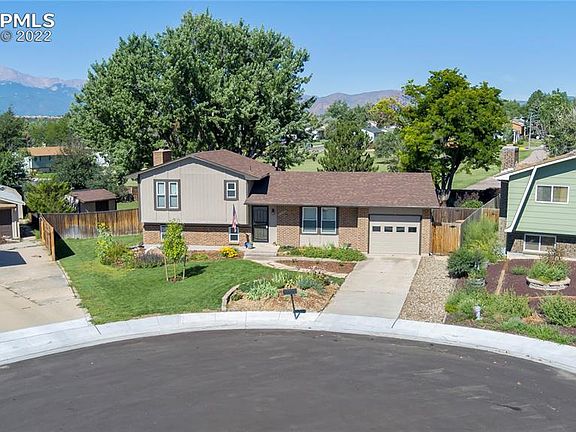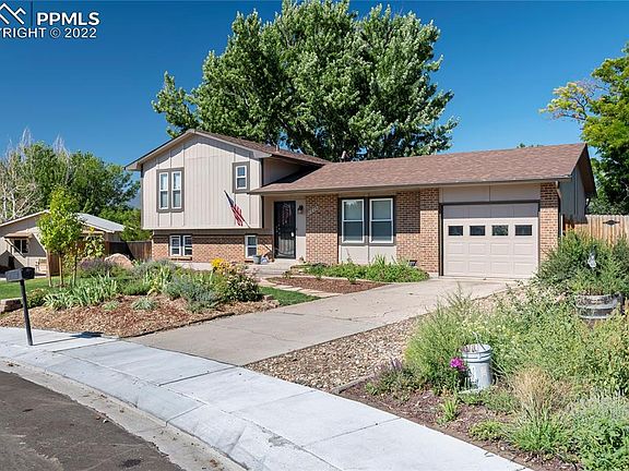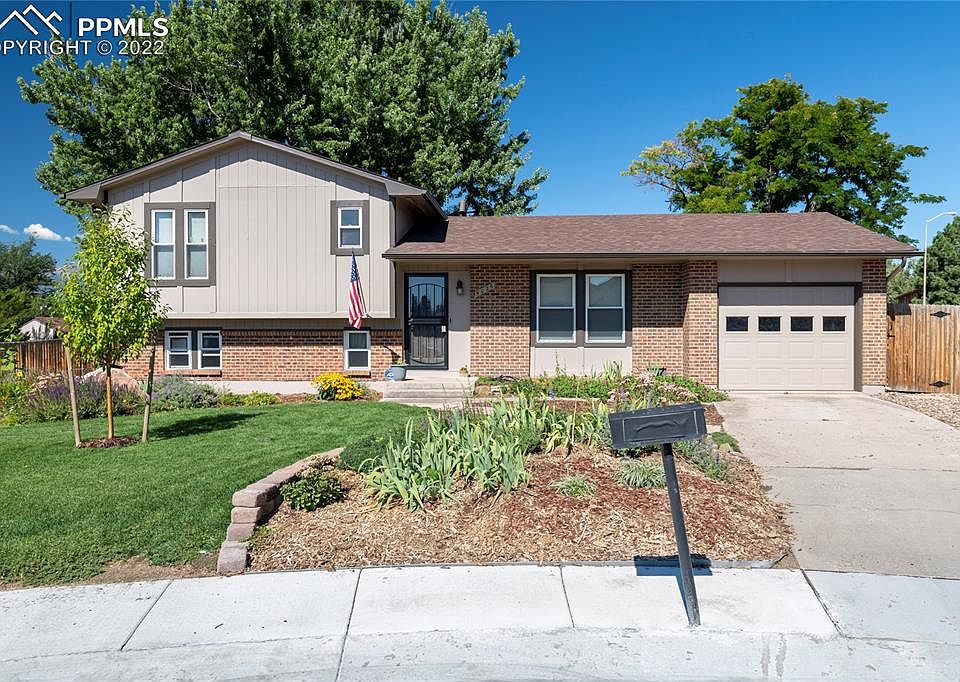At first glance, you will find welcoming curb appeal in a spectacular centrally located neighborhood and easy living in this tri-level home with new exterior paint, roof, and gutters. As you step inside and discover a design of convenience, effortless entertainment, & neutral colors stretching through the open concept living space. This well-appointed home offers 3 bedrooms, 2 bathrooms, and a 1 car garage with breath-taking Mountain views. The spacious family room is perfect for a formal sitting area and has custom built-in cabinets, hardwood floors, and features natural light while overlooking the front yard. The eat-in nook area oversees the kitchen, living room, and family room not to mention the ability to walk out to the enormous (31’x16’) back covered patio for fabulous indoor/outdoor entertainment or watching the gorgeous Colorado sunsets over Pikes Peak. The kitchen boasts multiple cabinets, Corian counters, gas stove, tile floors and a built-in desk area. Relax and unwind in the upper oversized primary bedroom. A secondary bedroom, linen closet, and full bathroom complete the upper level. The lower level has a gorgeous brick fireplace with a wealth of space, a third bedroom, laundry room, and ¾ bath. The crawl space is vapor barrier lined providing excellent additional storage. Enjoy privacy or entertain guests in the expansive yard that has so much to offer! You will find a storage shed, raised garden beds, a custom water feature, abundant flowers, bushes, and mature trees. The side-yard is 57’x54’ and is ideal for whatever your imagination decides. A/C for those hot summer days. Close to shopping, restaurants, schools, hospital and parks. Do not let this opportunity pass you by!