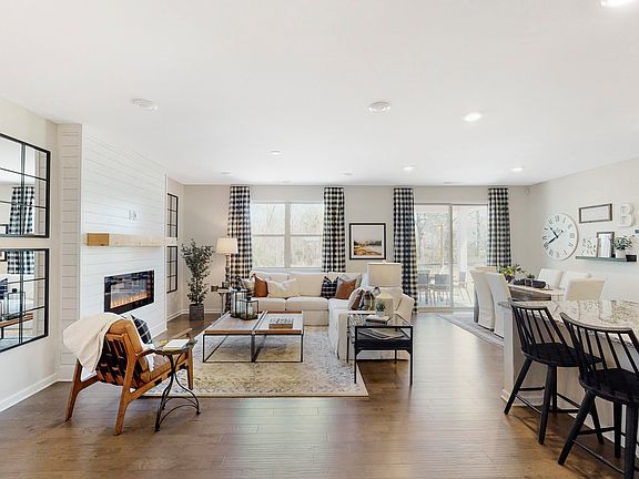 Featuring a thoughtfully designed ranch-style layout, the Elm at The Woodlands at McEwen Village offers plenty of open-concept areas for family and friends to gather. As you enter the home through a generous porch, you'll find two secondary bedrooms with access to a full hall bath. At the heart of the home, a well-equipped kitchen-boasting a gracious center island, walk-in pantry and charming breakfast nook-provides direct access to a sizable patio. The expansive great room leads to a secluded owner's suite-showcasing a roomy walk-in closet and a lavish private bath with double sinks and a benched shower. Other highlights include a versatile study, functional laundry room and a valet entry off the garage. Dublin Ivory Cabinets Quartz Helix Polished Countertops Cinnamon Walnut LVP Flooring Ice Gloss Tile Backsplash