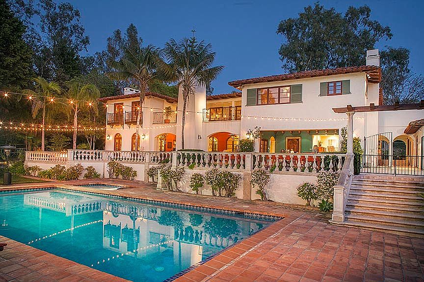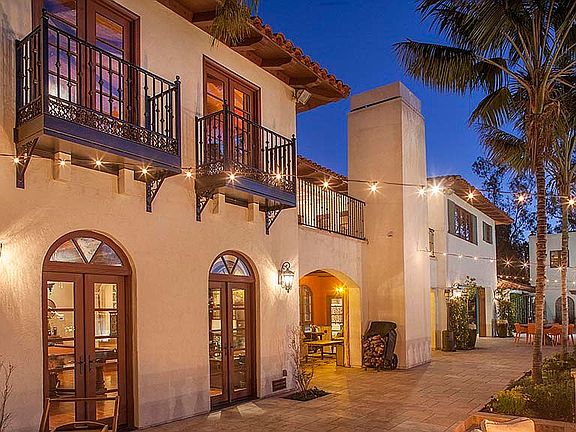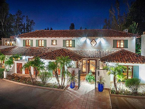 Spanish Revival style home with classic Hollywood aesthetic in the west end of the Covenant fuses the best of Rancho Santa Fe with convenient location and the ultimate in indoor-outdoor living. This sprawling estate is an equestrian’s paradise with separate access to the horse facility and relaxed luxury in the main house. The guest house, service quarters, subterranean game room, pool, spa, and covered deck will inspire endless adventure and a unique style of living. Iconic to Rancho Santa Fe, the Spanish Revival architecture provides for an elaborately detailed and romantic setting complete with exposed beams, arched entrances, red tile roof, ornamental ironwork, and terra cotta tiled patio. An ideal property for entertaining, with expansive patios and living spaces that completely open to the outside. The indoor-outdoor aesthetic allows for a true appreciation of the expansive grounds and beautiful landscape at any time from sunrise to sunset. Exquisitely designed to maintain an easy luxury throughout the home, the main house is equipped with gourmet kitchen, office and bedrooms downstairs, game room and master suite upstairs, and subterranean entertainment room. The well-manicured, outside grounds features a pool, spa, baby pool, drought-tolerant landscaping, and mature fruit trees. The one bedroom guest house will enchant weekend visitors with the same resort-style luxury so deftly curated throughout the main home. Separate service quarters ensure privacy yet close proximity to service for whenever needed. The horse facility has private access, includes a 78’ x 193’ riding ring, 6 stall barn, pasture, and easy access to local bridle paths. Well situated in the prestigious Rancho Santa Fe and only a short drive to the coast or Village, this home represents the ultimate in convenient, manageable luxury.